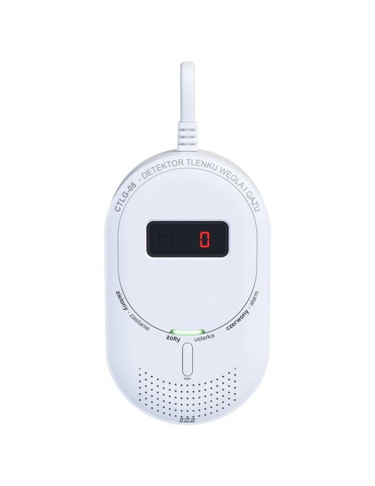 Dwufunkcyjny detektor tlenku węgla (czadu: CO) oraz gazu ziemnego-metanu (C H4) w pomieszczeniach zamkniętych.