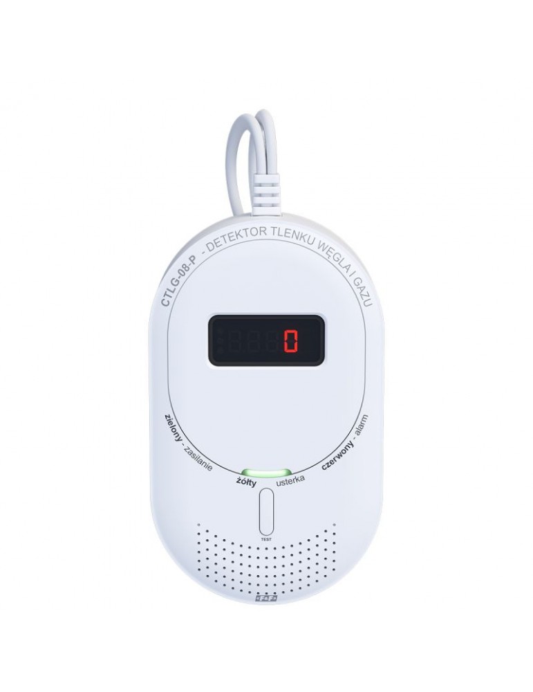 Detektor tlenku węgla i gazu ziemnego CTLG-08-P przeznaczony jest do monitorowania i ostrzegania przed groźnym stężeniem tlenku węgla (czadu) oraz metanu.