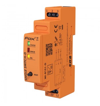 Przekaźnik SINGLE SWITCH-D montowany jest na szynie DIN. Pozwala włączyć lub wyłączyć podłączone urządzenie elektryczne. Za jego pomocą można uruchamiać większość domowych sprzętów. Zamontowany pod włącznikiem światła daje możliwość sterowania pojedynczym obwodem oświetlenia. Przekaźnik sterowany przez Wi-Fi współpracuje z wyłącznikami klasycznymi oraz dzwonkowymi.
