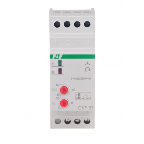 Czujnik kolejności i zaniku faz CKF-BT-TrueRMS przeznaczony jest do zabezpieczania silników elektrycznych zasilanych z sieci trójfazowej. Czujnik kolejności i zaniku fazy zadziała w przypadku zaniku napięcia w co najmniej jednej fazie lub gdy wystąpi asymetria napięć między fazami. Czyli wtedy, gdy pojawia się zagrożenie zniszczenia silnika. CKF-BT-TrueRMS kontroluje również kolejność faz zasilania, uniemożliwiając wirowanie silnika w nieprawidłowym kierunku.