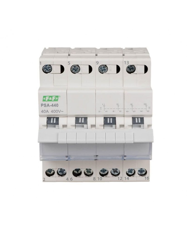 Modułowe przełączniki instalacyjne sieć-agregat realizują program przełączeń 1-0-2, dzięki czemu możliwe jest np. podłączenie do wyjścia jednej z dwóch linii wejściowych, lub całkowite rozłączenie obwodów. Możliwe jest dokonywanie przełączeń do znamionowego prądu obciążenia.